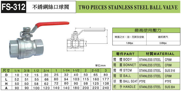 不銹鋼絲口球閥